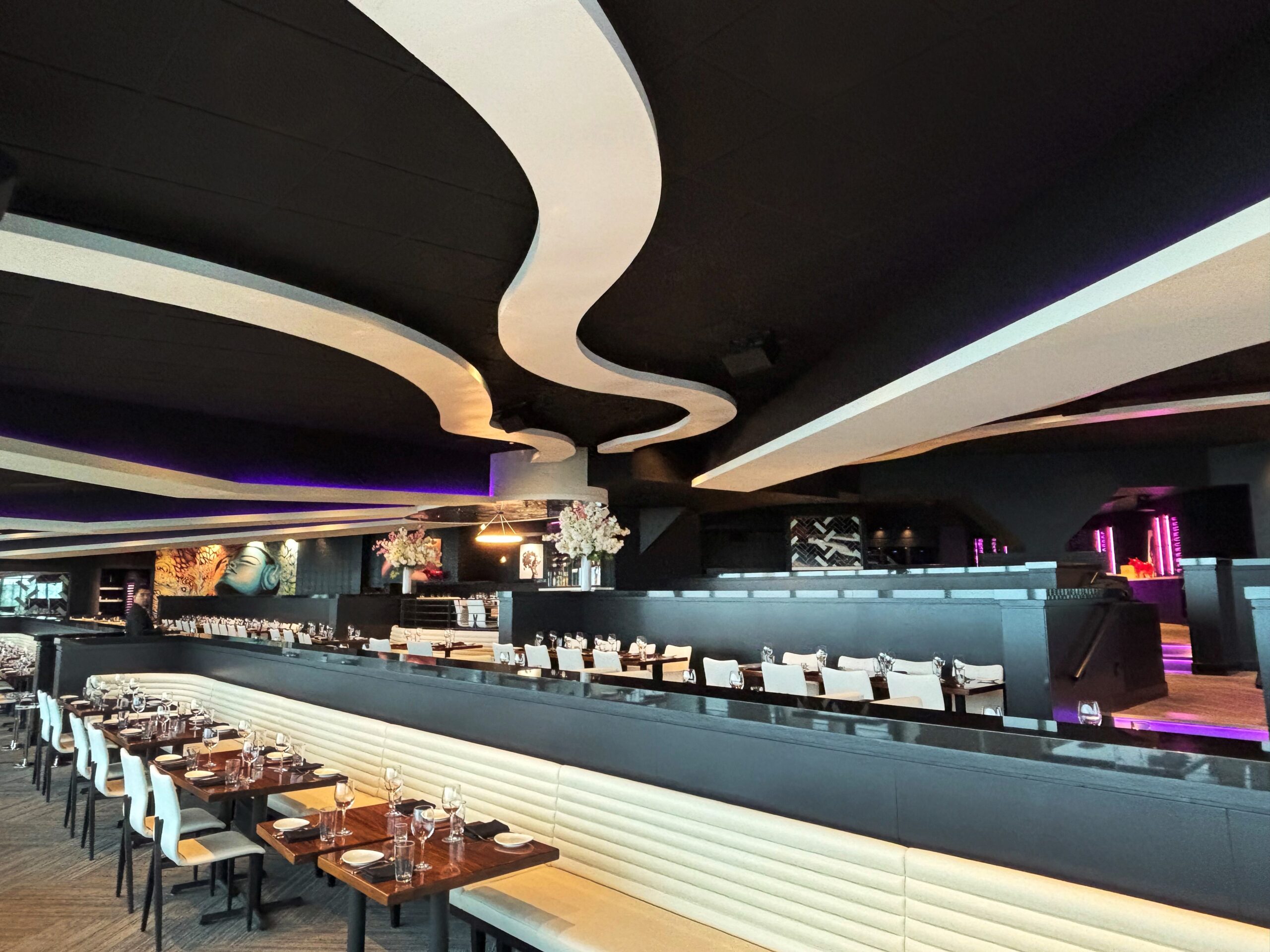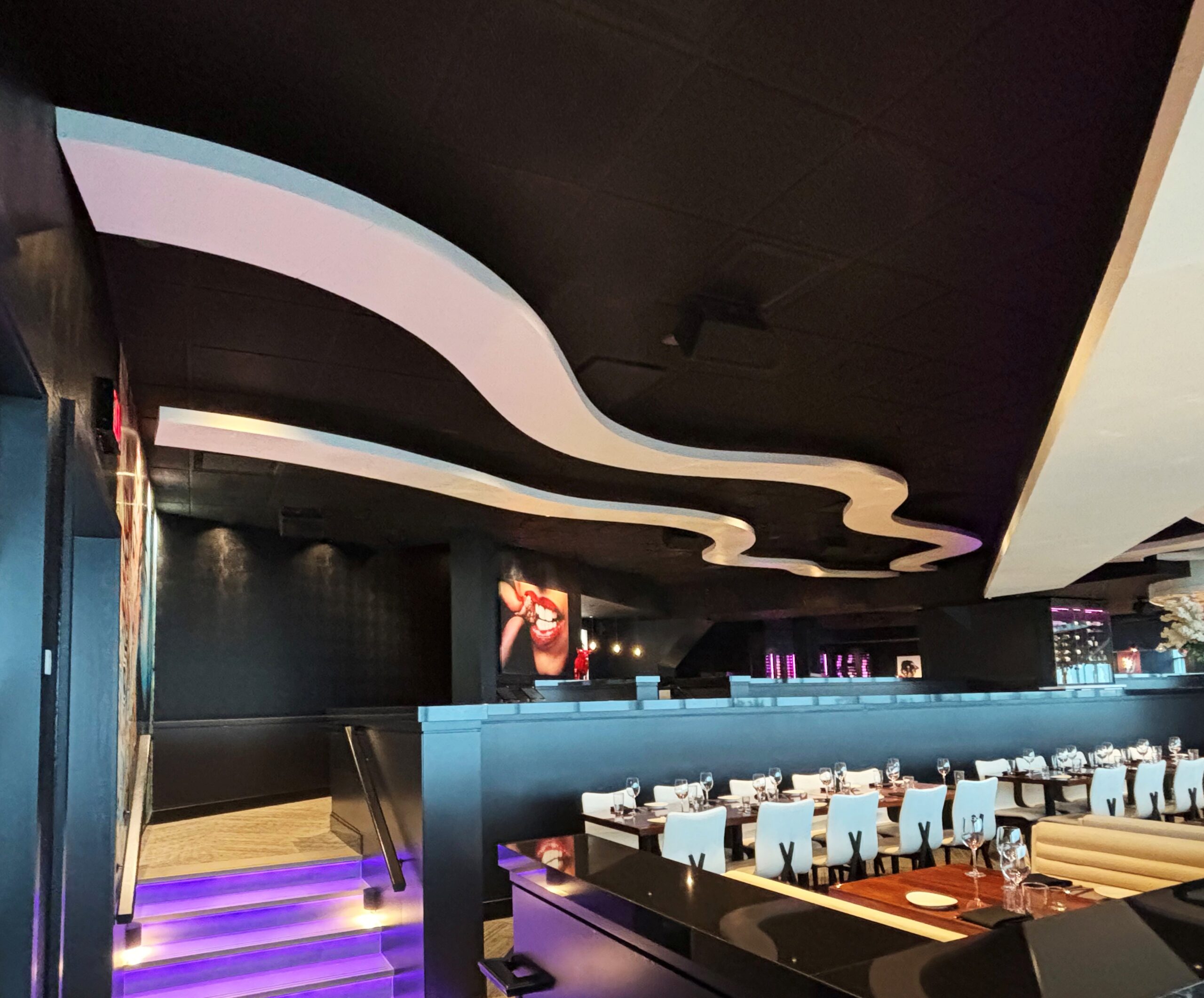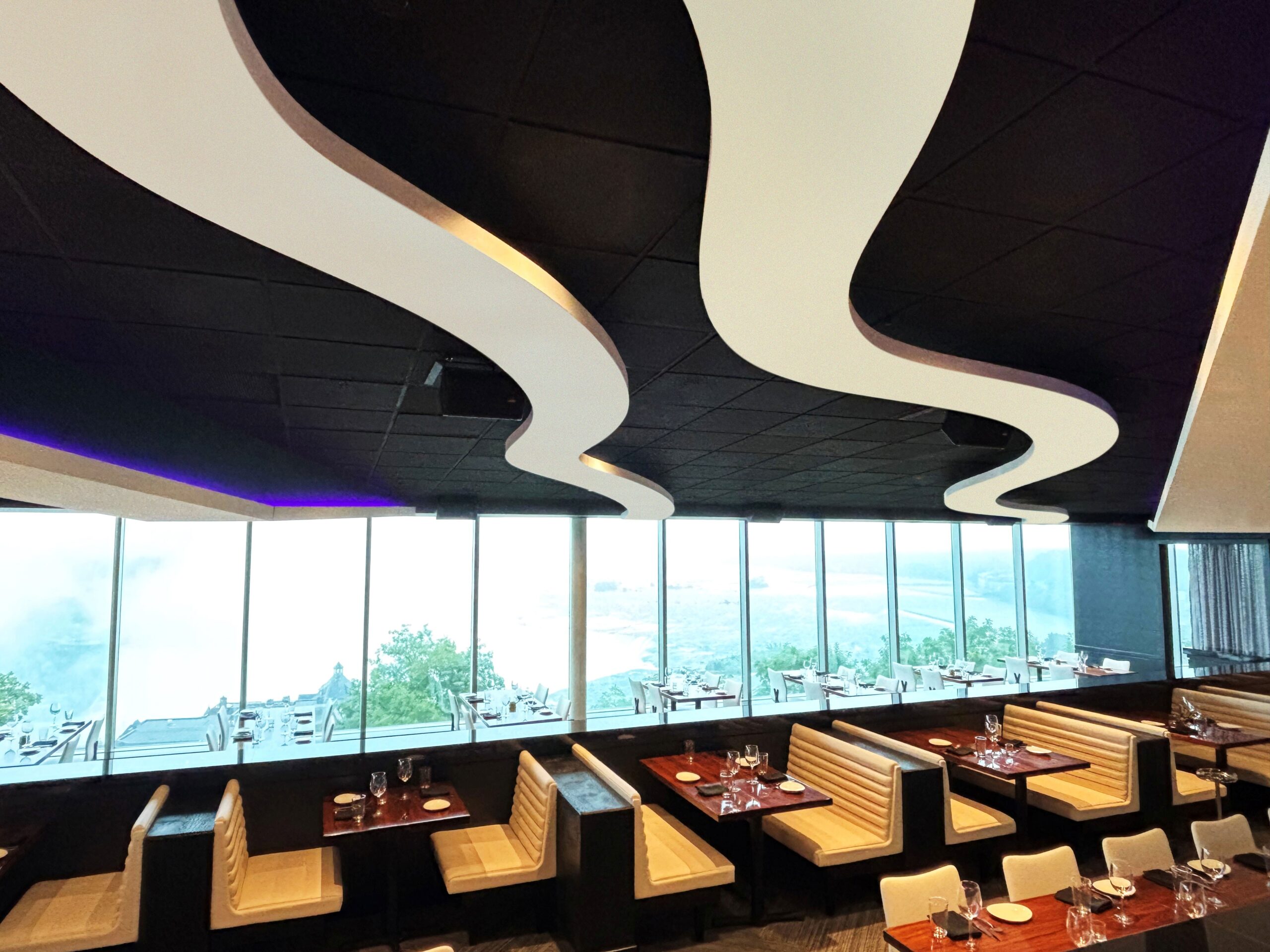 In Fall 2024, The ONE Group Hospitality Inc. unveiled STK Steakhouse Fallsview inside Niagara's Embassy Suites Hotel, a destination celebrated for its modern, sophisticated design and breathtaking views of the Falls. eurOptimum was brought on to craft a dramatic slat ribbon wall at the entrance and flowing ceiling ribbons throughout the restaurant that elevate the dining experience.